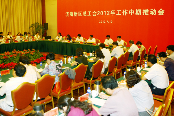 7月10日,滨海新区总工会2012年中期工作推动会暨第二季度工会主席联席会在滨海一号假日酒店召开。新区各城区、各功能区及直属单位工会主席、副主席,基层企业工会主席代表约80人参加会议。