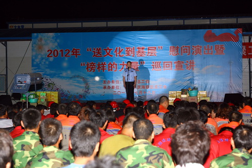 7月18日傍晚,由市总工会举办、滨海新区总工会承办的“送文化到基层”慰问演出曁“榜样的力量”巡回演讲活动启动仪式在新区现代产业园蓝白领公寓项目举行。市总工会宣教部部长申继臣、新区总工会副主席张建起、汉沽总工会副主席秦维恩出席活动,并与在建工程和项目周边的近千名建筑工人一同观看了演出。