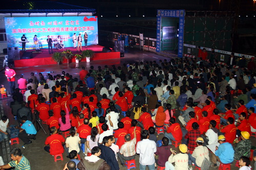 9月6日晚,由滨海新区总工会、滨海新区安监局主办,中国建筑第三工程局承办的“面对面、心贴心、实打实”滨海新区职工艺术团服务新区建设者文艺演出在中建三局天津恒富大厦建设工地进行,为近千名一线建设者带来一场精彩演出。