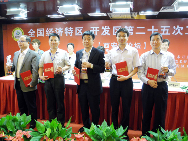 大连开发区、广州开发区、西安开发区、天津滨海新区、长沙开发区(左起)五家单位的论文获得一等奖
