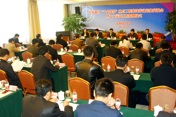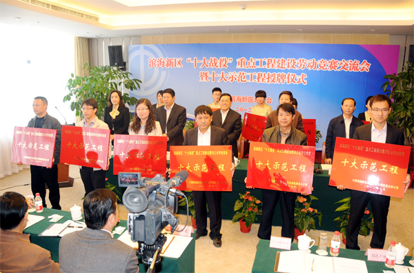 10月25日,滨海新区总工会在轻纺经济区召开滨海新区“十大战役”重点工程建设劳动竞赛交流会暨十大示范工程授牌仪式,推动我区“十大战役”重大项目、重点工程劳动竞赛活动深化创新开展,积极争创促进区域发展全国示范性劳动竞赛一流赛区,确保“十大战役” 各项工程建设高水平、高质量、高效率的完成。会上,中央大道轻纺经济区段工程等十个项目工程被命名为“十大战役”重点工程建设劳动竞赛“十大示范”工程(名单附后)。