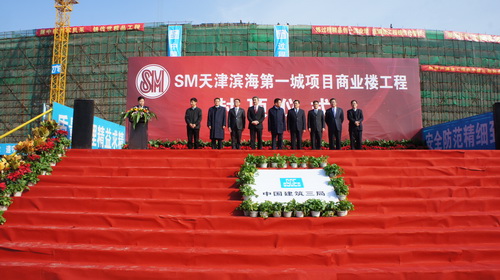 11月5日,保税区空港经济区天津SM城市广场商业楼主体结构封顶仪式暨“建功空港 我为先锋”劳动竞赛阶段表彰大会隆重举行。天津港保税区党组书记、管委会主任冯志江、滨海新区总工会党组书记、主席刘明森、保税区管委会党组副书记副主任张今威、菲律宾SM集团总裁施汉生、滨海新区总工会副主席刘锦霞、中建三局副局长田军、保税区管委会副主任曲华林、保税区规建局局长杨爱华、保税区工会主席吴玉文,上海润丰建筑工程管理有限公司董事长袁英策、天津市建设工程监理有限公司滨海分公司经理李士强等参加了封顶仪式。仪式由中建三局副总经理兼工会主席张能平主持。