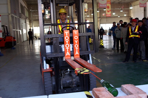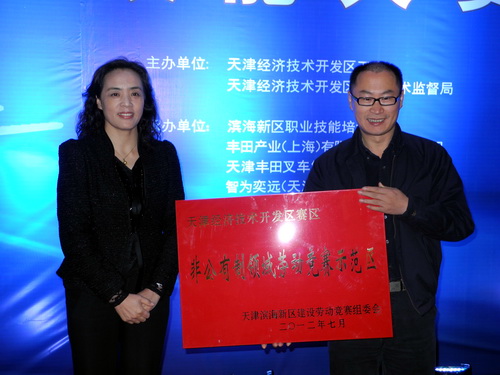 11月9日上午,滨海新区非公有制领域劳动竞赛示范区授牌仪式暨天津经济技术开发区2012年第三届叉车驾驶员技能大赛,在天津丰田叉车销售有限公司厂房内隆重举行。滨海新区总工会副主席刘锦霞,开发区工会副主席田俊强,副主席杨学军、开发区质量技术监督局副局长张白出席,来自25个企业近50名叉车驾驶员选手参加仪式。此次大赛是新区工会组织贯彻党的十八大会议精神,争创促进区域发展全国示范性劳动竞赛一流赛区的具体实践,也标志着开发区非公有制工业领域劳动竞赛活动掀起了新的高潮,取得了新的突破。