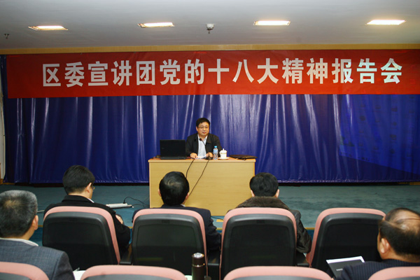 12月20日下午,滨海新区“十八大精神宣讲团”成员、区委宣传部理论处陈宝军处长应邀到新区总工会机关举行专场报告会,为新区200余名工会干部深入解析了十八大报告中的新表述、新论断、新部署、新要求,受到听众的热烈欢迎。