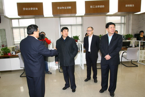 1月15日,天津市人大常委会副主任、市总工会主席邢明军到滨海新区总工会考察调研,市总工会副主席黄晓云陪同。