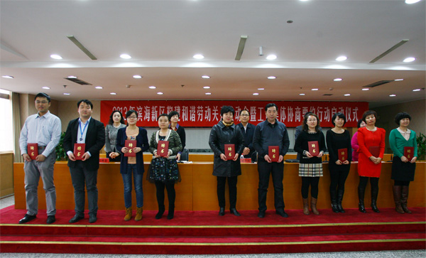 3月6日,新区总工会与新区人社局联合举行构建和谐劳动关系推动会暨工资集体协商要约行动启动仪式。