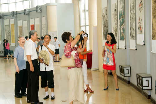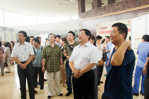 8月15日,由新区总工会、滨海时报社主办的“众美城”杯滨海新区首届职工书画作品大赛巡回展在塘沽博物馆正式启动。滨海新区总工会党组书记、主席刘明森出席仪式并讲话,众美集团副总裁徐密峰,各城区、功能区及直属单位工会,塘沽、汉沽、大港、开发区文联有关领导和会员以及新区广大职工书画爱好者300余人参加了启动仪式。