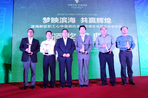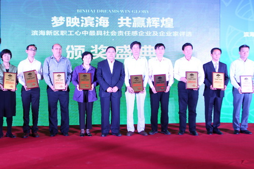 天津市特变电工变压器有限公司等10家单位当选为“滨海新区职工心中最具社会责任感企业”,天津市特变电工变压器有限公司总经理张红军等5名企业家当选为“滨海新区职工心中最具社会责任感企业家”,振华物流集团公司等37家单位当选为“滨海新区履行社会责任优秀企业”,天津海河下游开发有限公司董事长徐捷等33位企业家荣获“滨海新区履行社会责任优秀企业家”称号。天津紫竹林官港置业有限公司获得评选活动特别贡献奖。与会领导为获奖企业颁发了奖牌和奖杯,并现场抽取了100名参与投票的幸运参与者。