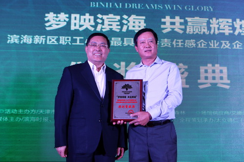 刘明森主席为“滨海新区职工心中最具社会责任感企业”颁奖