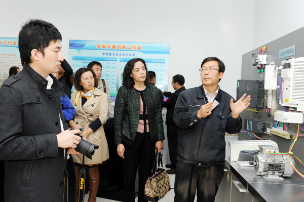 随后,大家来到天津钢管公司参观“李刚创新工作室”, “李刚创新工作室”于2012年5月成立,现有成员114名,他们多为一线工人,现在主要从事电气故障诊断、电气知识培训和技术攻关等工作。他们先后参与重大设备抢修50多次、提供咨询服务近300次,攻克电气设备维修难题20多个,累计培训职工2000多人次,并总结形成了471条技术诀窍、操作方法,被公司作为操作标准在生产线上推广。