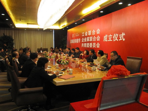 11月5日,天津滨海浙商大厦楼宇工会联合会成立大会在滨海浙商大厦26楼会议室隆重召开。市总工会主席邢明军、滨海新区总工会主席刘明森、中心商务区管委会副主任史继平出席会议。