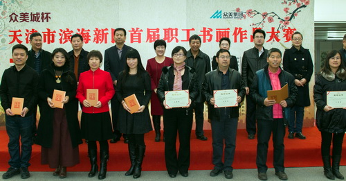 11月14日上午,初冬季节的泰达图书馆里热闹非凡,丹青添彩、翰墨飘香。在党的十八届三中全会胜利闭幕、滨海新区第二次党代会即将胜利召开之际,“众美城”杯滨海新区首届职工书画大赛表彰会暨新区总工会文化惠民工程总结表彰会在这里举行,首届职工书画大赛圆满收官。滨海新区总工会副主席张建起、滨海时报社副总编李鸿忠、众美集团营销经理刘云姝以及新区各文联、各工会有关领导出席了会议,新区广大文学、书画爱好者约300人同聚一堂共享新区职工文化盛宴。