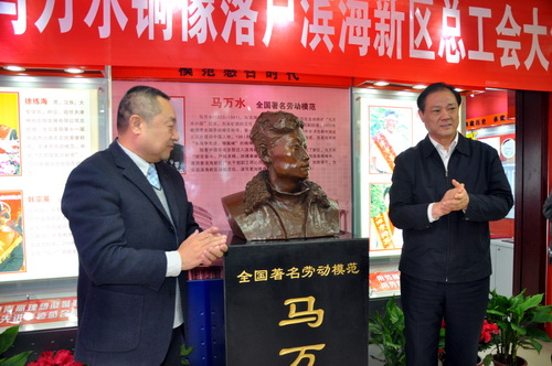 1月9日,全国著名劳模马万水铜像揭幕仪式在滨海新区总工会大港展厅举行。新区区委副书记张传捷,中国华冶科工集团有限公司董事长、党委书记孟庆林共同为铜像揭幕。新区人大常委会副主任、总工会主席刘明森主持仪式。新区总工会、中国华冶科工集团等有关负责人,部分劳模代表出席仪式。