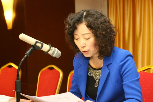 新区总工会副主席、女职委主任张雅萍做女工工作报告
