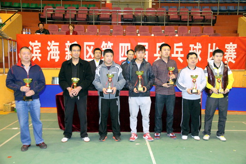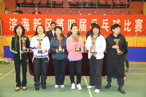 3月23日,滨海新区第四届乒乓球比赛在塘沽体育馆圆满落幕,经过两天的争夺,比赛共角逐出男女团体、男女单打和老年组五项冠军。其中,击剑馆乒乓球代表队获得了男团冠军,女团冠军为亨达货运代表队所摘得,来自天保控股一队的孙宝军和来自亨达货运队的邓颖分获男女单打冠军,来自杭州道老年代表队的刘金波获得老年组冠军。此外,组委会还为海晶集团代表队和大港油田代表队颁发了道德风尚奖。
