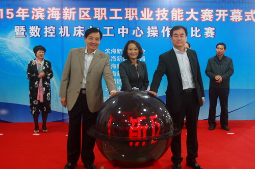10月11日,2015年滨海新区职工职业技能大赛开幕式在海河教育园“滨海新区职工素质培训基地”天津市机电工艺学院举行,市总工会党组成员、副局级巡视员、经保部部长申静涛,滨海新区总工会党组副书记、副主席李兆华,高新区工委副书记、巡视员张世军等领导出席并共同为大赛开幕。