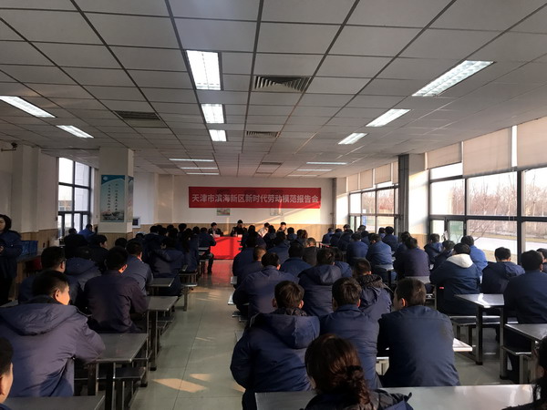 12月11日,由滨海新区总工会主办、高新区总工会承办的滨海新区新时代劳模报告会在天津明阳风电设备有限公司举行,邀请天津市新时代劳模宣讲团成员、全国劳动模范、原天津港中煤华能煤码头有限公司孔祥瑞操作队党支部书记、队长孔祥瑞,以《当好主力军 建功新时代》为题为200名一线职工作报告。