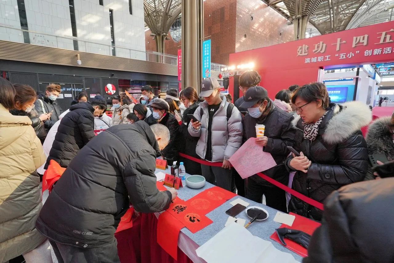 1月21日上午,区总工会“送万福 进万家”活动在滨海文化中心2层中央大厅举行。作为深受职工群众喜爱的工会文化品牌,活动吸引了区域广大职工慕名前来,活动现场,职工书法名家们根据职工提供的文字,量身定制书写春联、福字,展现了职工美好的新春愿景和工会“娘家人”的贴心关怀,让大家提前收获新春文化年货,在墨香中感受中华优秀传统文化的魅力。