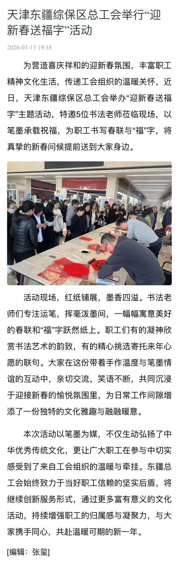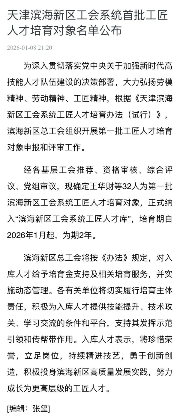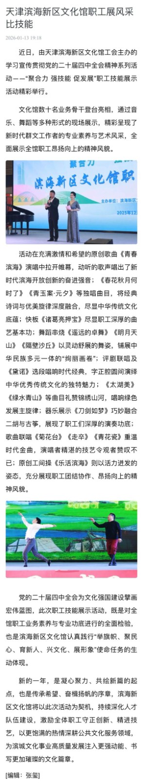 近期,滨海新区工会围绕职工精神文化需求、生活保障与成长发展,推出系列服务举措,开展职工风采展示活动,搭建平台展现职工昂扬向上的精神风貌;深化“四送一补”服务,把温暖送到职工心坎上;公布首批工匠人才培育对象名单,为技能人才搭建成长阶梯,助力区域技能人才队伍建设。相关工作获得人民日报、工人日报、天津工人报等多家媒体关注报道,一系列务实举措,切实增强了职工的获得感、幸福感与安全感。